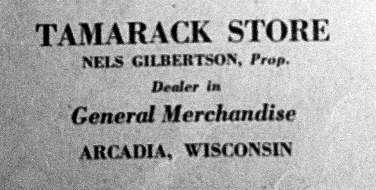 Ad from 1930. Tamarack Store was located mid-way between Arcadia and Centerville, on Hwy 93 and Holcomb Coulee Rd.