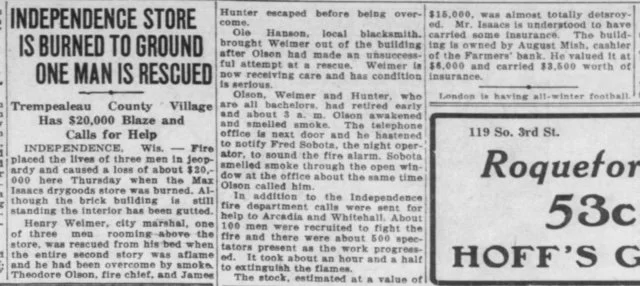 1928 fire in Independence. It is speculated the store was north of the old bank–