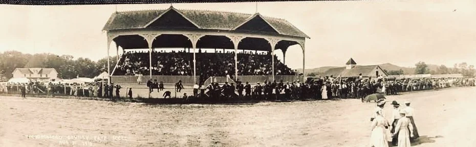 The new Grandstand. built in 1893 and razed in 1993. A race track ran in from the grandstand. Underneath the seating exhibits like sewing and vegetables were displayed