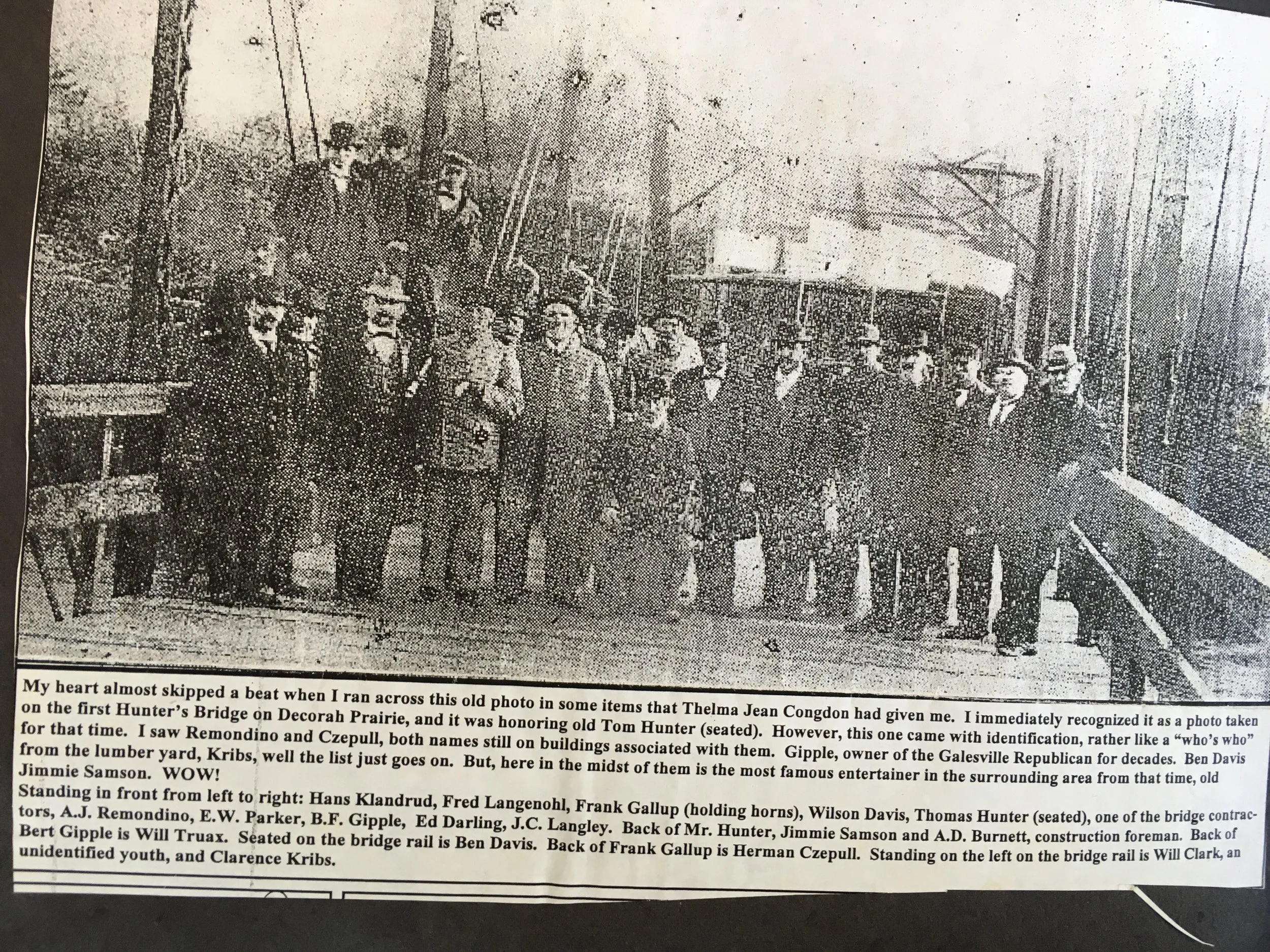 1893 Opening Dedication for Hunters Bridge. Seated in the front middle is Thomas Hunter who lobbied for the construction of the bridge for many years