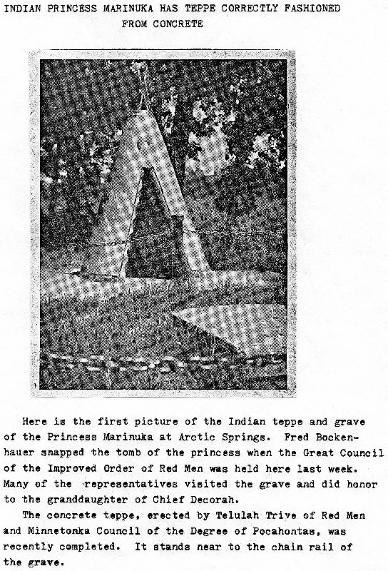 1926 Concrete Teepee on Princess Marinuka's grave at Arctic Springs