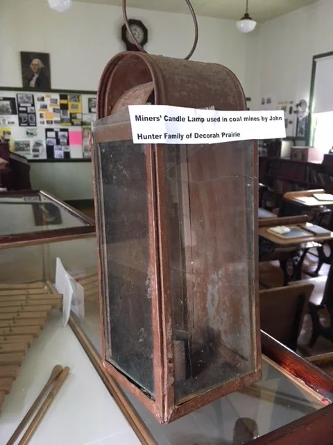 Old miners' lamp used by the Hunter families in the coal mines before coming to Decorah Prairie in 1853