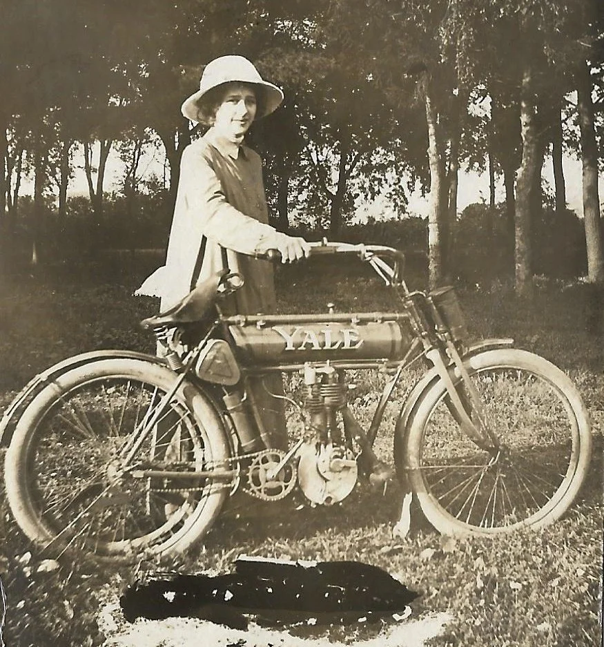 Tilly Freimarck and her motorized bike 1916