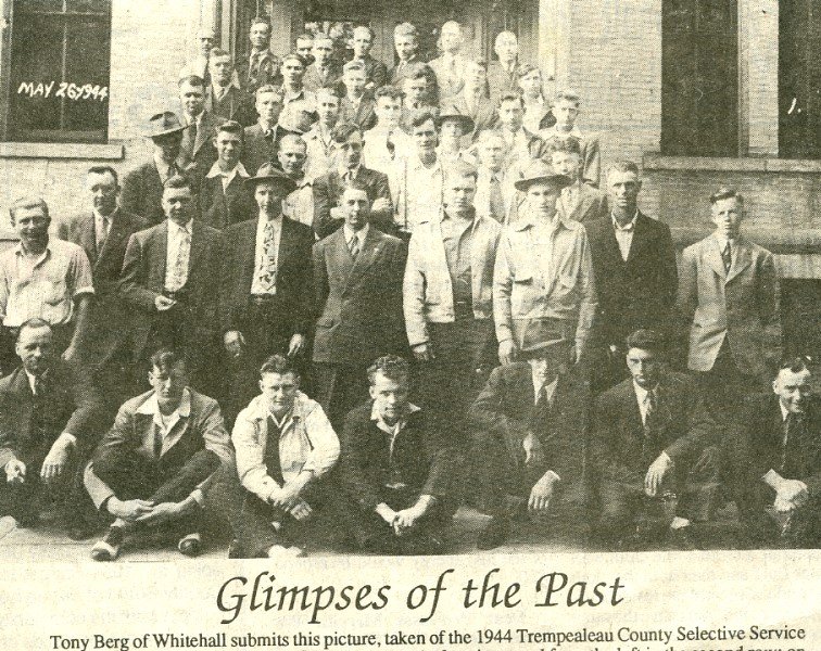Selective Service draftees May 1944 2cnd Row 2 from left is Tony Berg, on his left Jerry Howard. Far Right 2nd row is Theodore Stendahl Jr, 4th r far left is Donald Wright