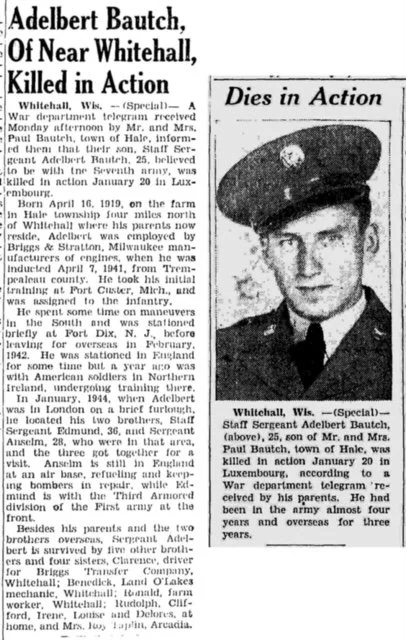 Palmer Skoug Army, son of Reinhardt Skoug, Strum, discharged 1946. Married Betty Tibbets in 1951